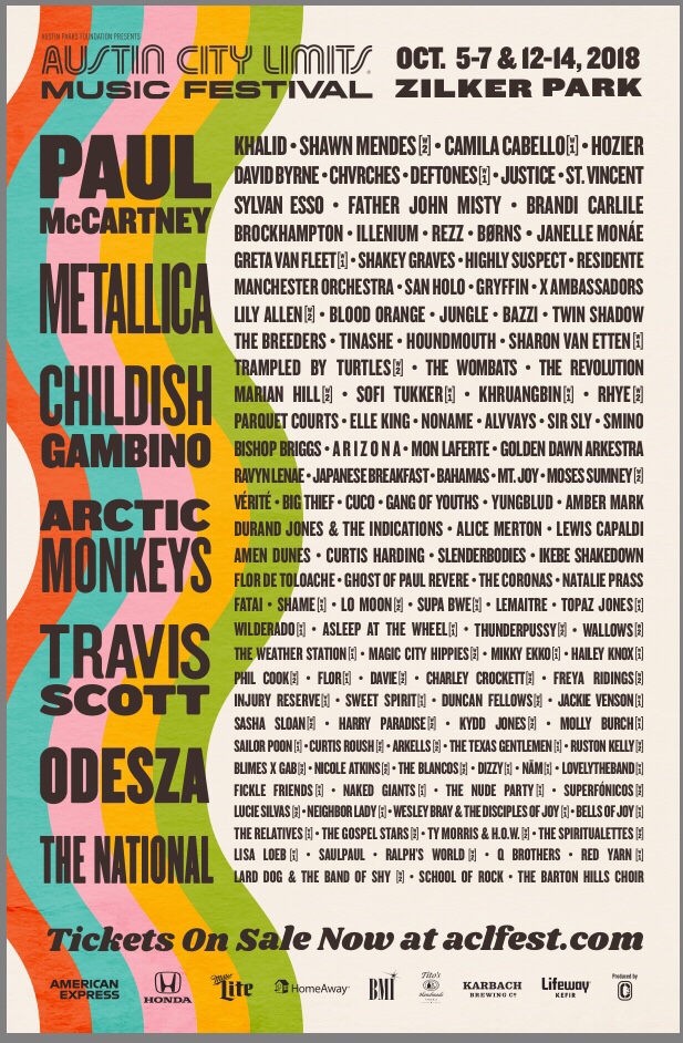 I won’t list out all 27 bands I want to see. I will say this is the first time in my history of ACL cherry picking that I wanted to see the majority of headliners. As you know, I love the Beatles. Watching Paul McCartney live on stage is a bucket list item for me. Childish Gambino? I love Donald Glover. Love him in Community and I always die laughing when I hear his stand-up on Spotify (highly recommend the “sugar addicts” bit). Arctic Monkeys always had great music and heard they are great live. Got on The National train last year and got a friend to go through a The National binge around last Thanksgiving. Odesza: I will need to get more familiar with. I love the collaboration with Leon Bridges in “Across the Room”. Pst ACL…why did you not include Leon Bridges???? He has a new album out this year! Secretly praying Odesza brings out Leon for at least that song.
