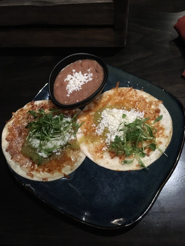 The waitress gave us chips, pork rinds, and salsa. The pork rinds were greasy. The chips were fresh out of the oven (a plus!), and the salsa had a nice kick to it. I ordered the Tres Quesos Quesadillas, which came with a side of refried beans. I was surprised when the quesadillas came to the table. It was tiny and looked more like a DIY broke girl pizza than a quesadilla. It wasn’t bad per say, just confusing. Let me rephrase that: it was not bad, it was confusing until you got a bite out of the chili. Then it just became over the top spicy. Apparently the staff at Descanso put spicy chili on the majority of their plates. My sisters got the Mahi Mahi tacos and the Pollo Asado tacos. The Mahi Mahi tacos, per my sister, were good. The fish was fresh and the Mexislaw added a nice texture component. The Pollo Asado, on the other hand, was not a big hit. My sisters have a high spice tolerance. The fact they were in tears from the amount of spice in the tacos tells you something: these people go crazy with the spice.